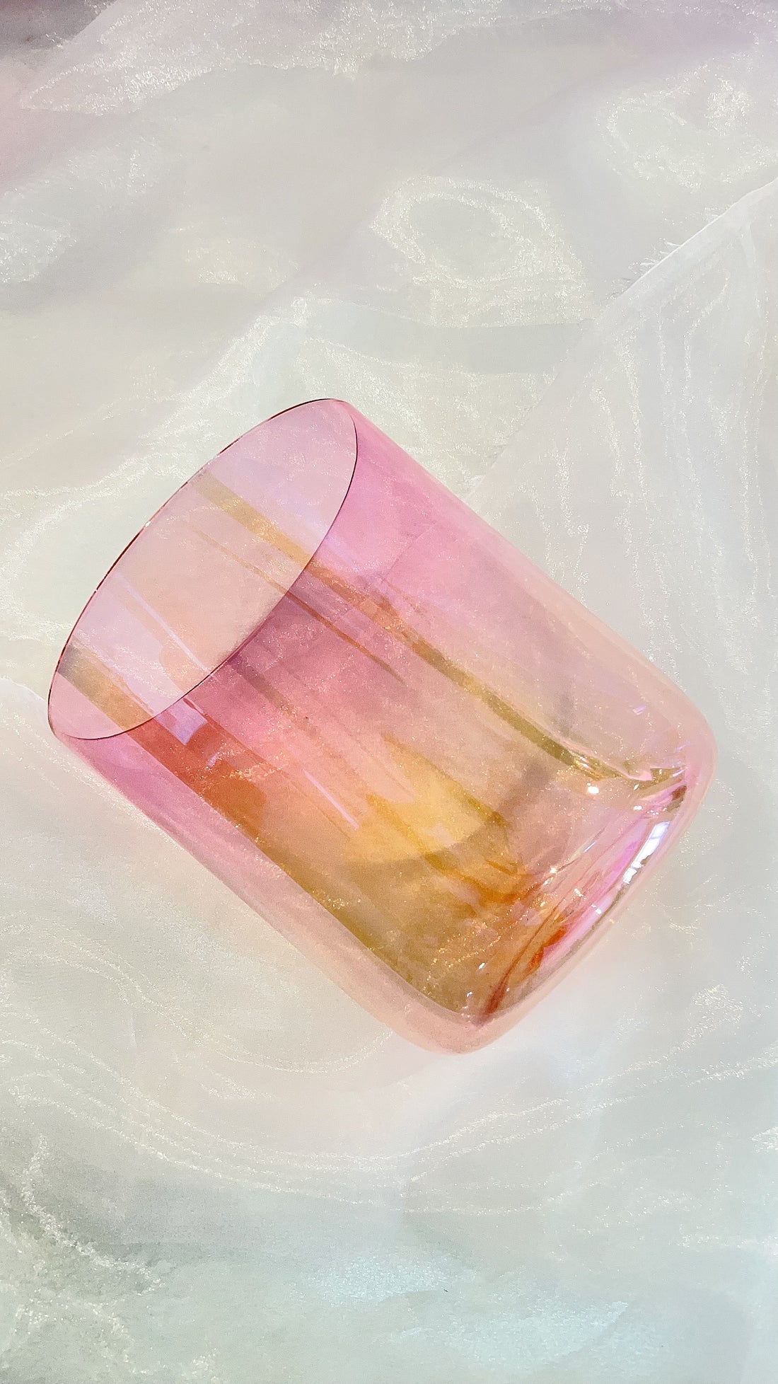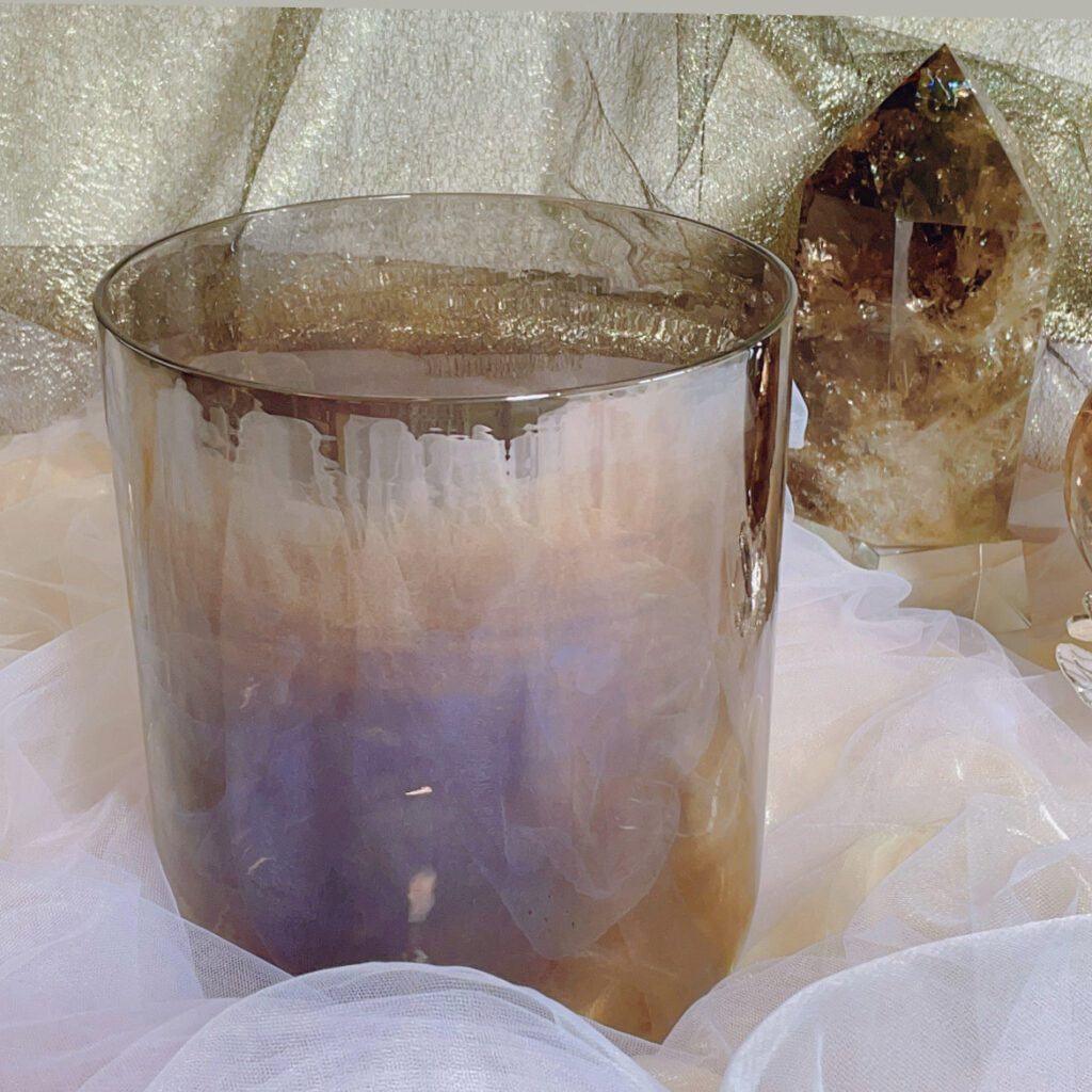 The Sahasrara, Crown Chakra crystal singing bowl is pure quartz, coated with a subtile ethereal...
