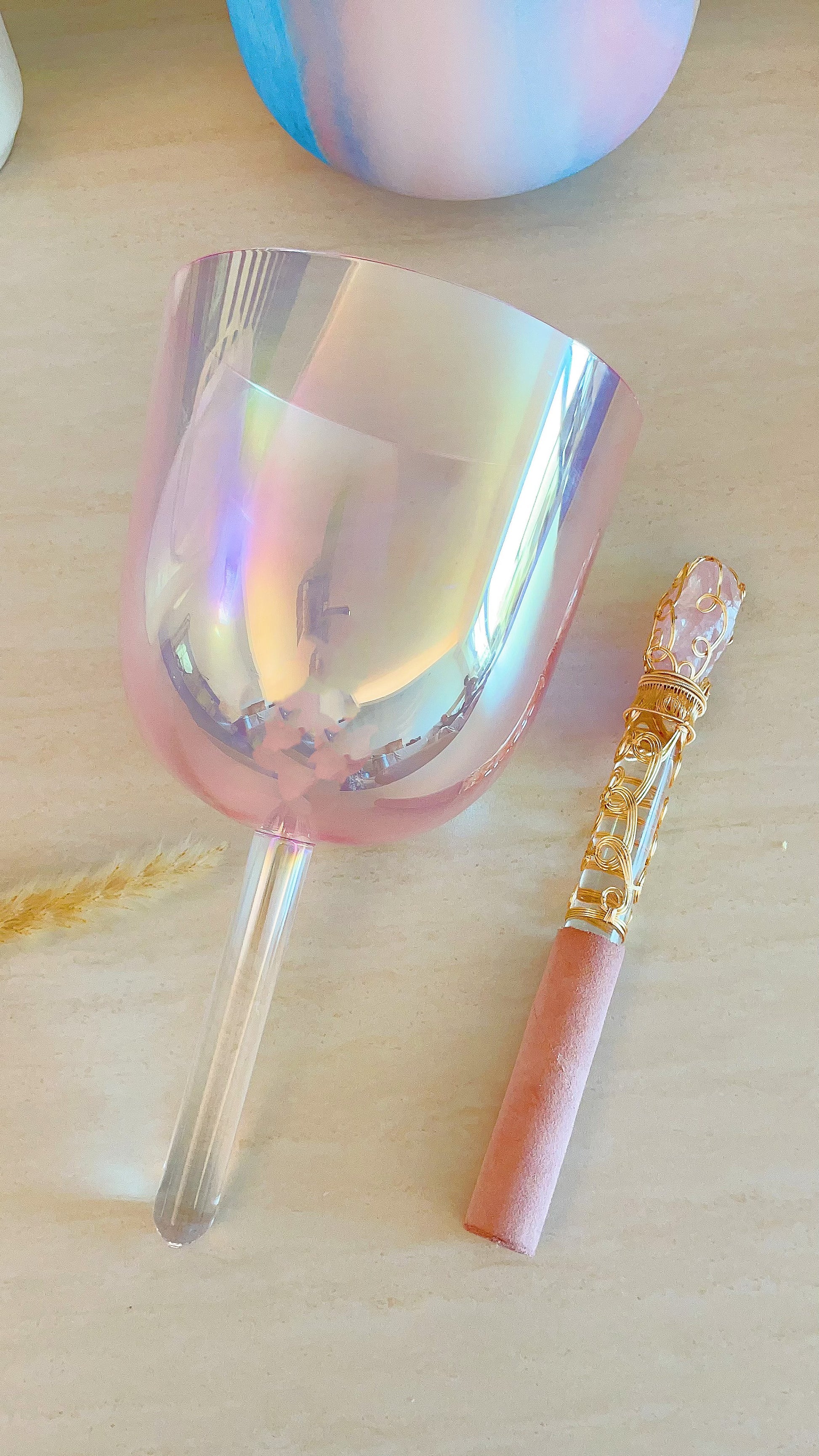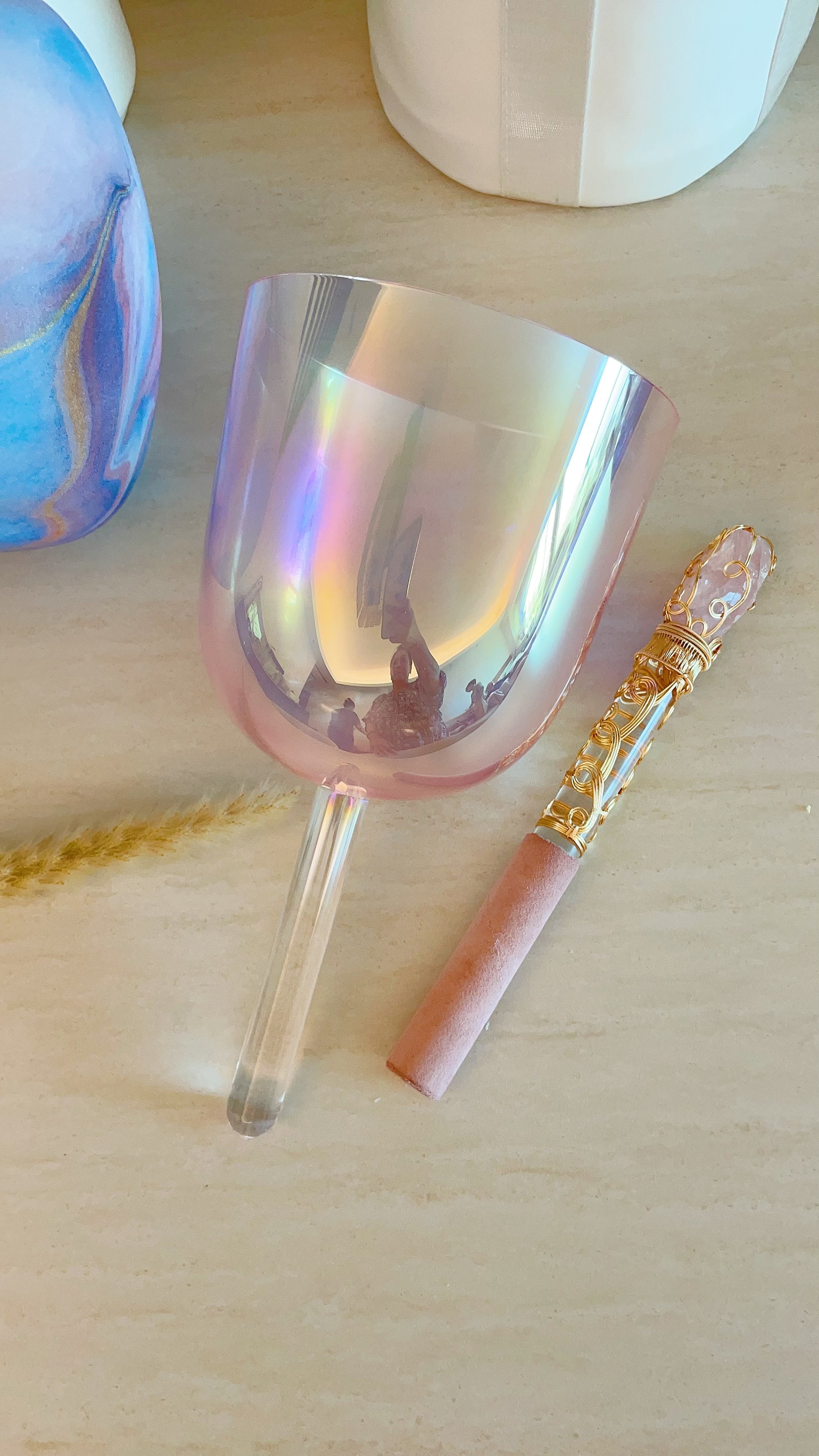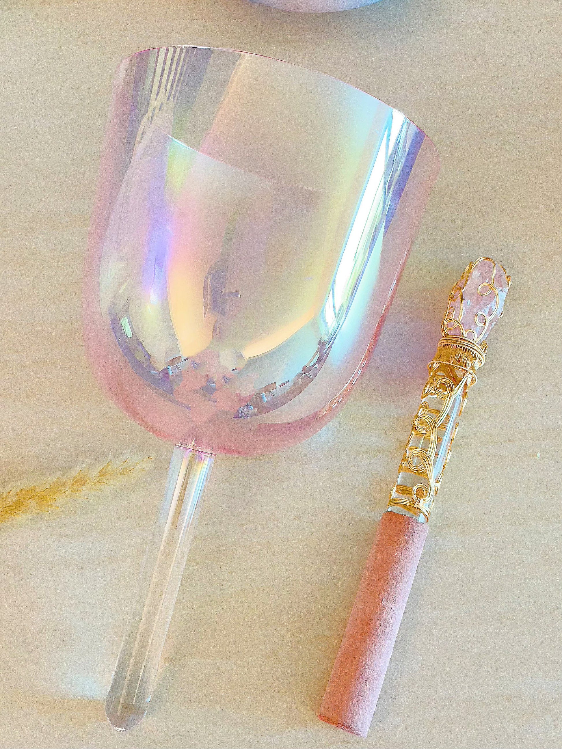 Channel the loving energy of Archangel Chamuel with this light aura pink singing bowl. Named for the angel of compassionate love, we recommend tuning the bowl to the soothing Heart Chakra or High Heart Chakra tone.