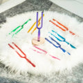 Our crystal tuning forks are crafted from pure clear quartz. These forks are designed for intimate sound bath sessions, not large audiences.