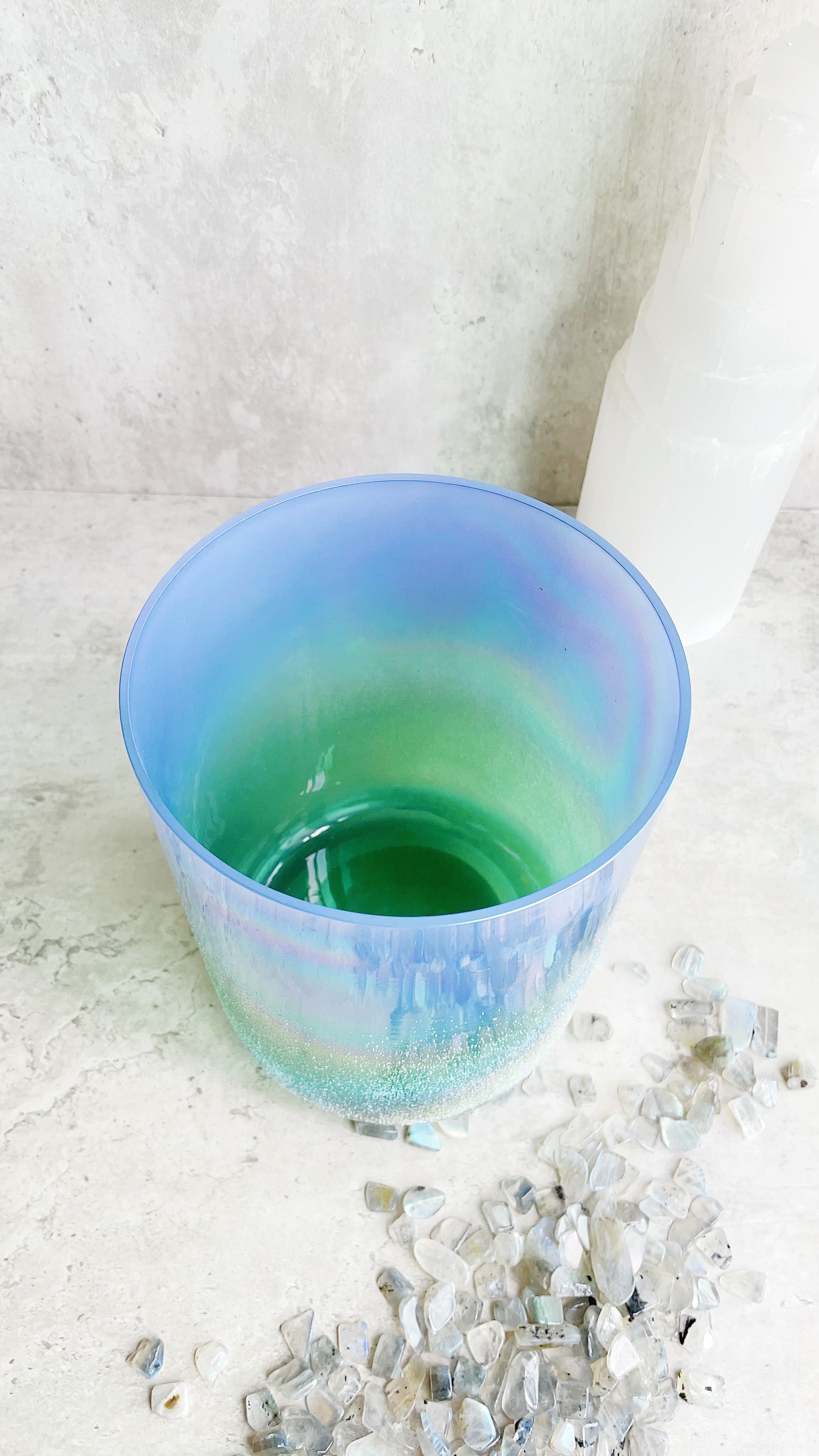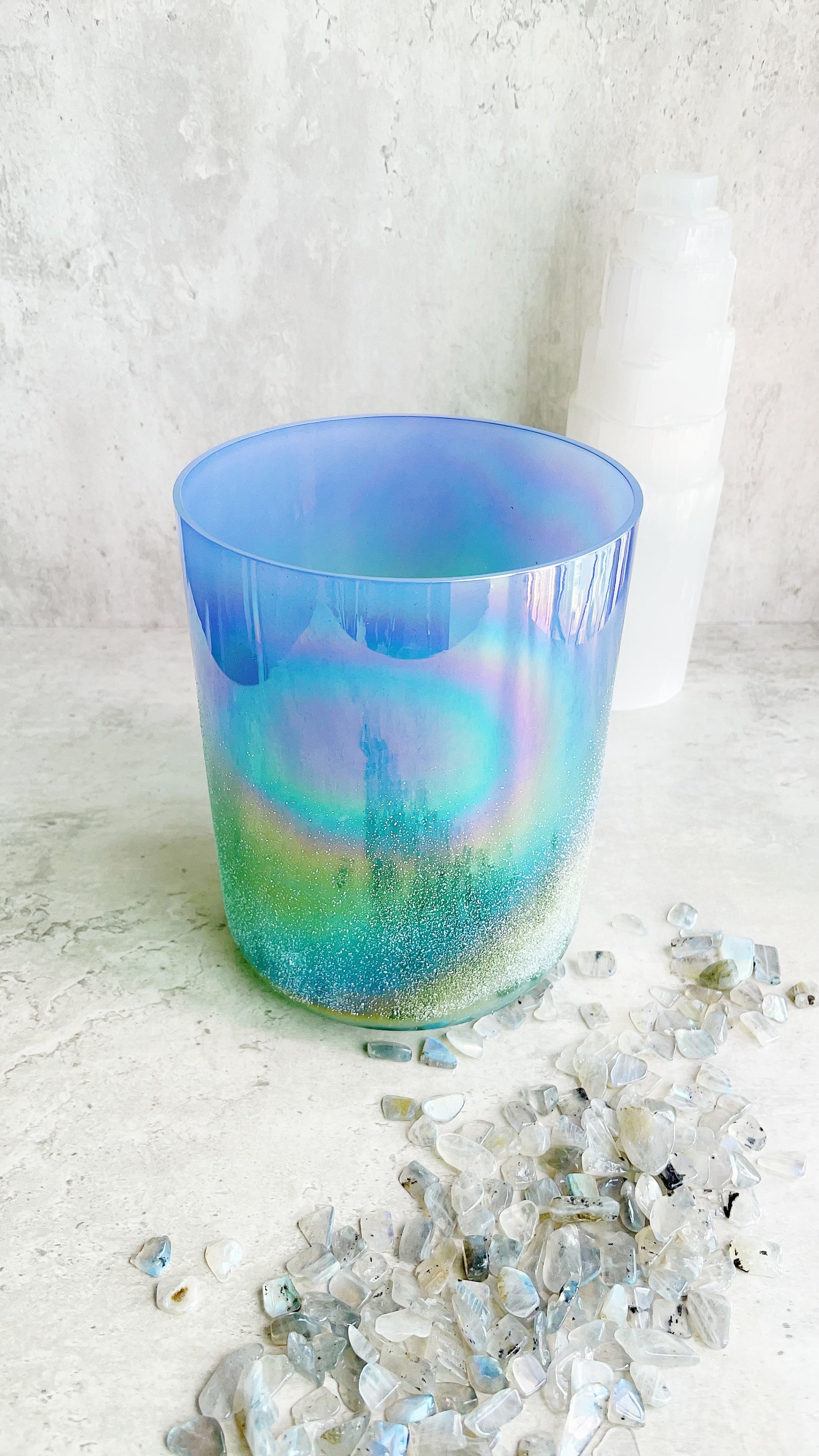 In the space where twilight meets the tide, a voice awakens. "Ondine's Soul" is a captured fragment of water's eternal memory - a vessel where celestial light dances with oceanic depths. Each bowl is handmade to order and hand tuned to your choice of sacred frequency.