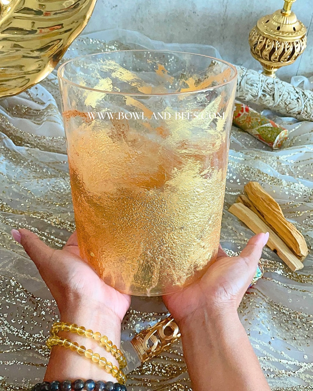 2. The Aura Crystal Mallet: A conduit of focused blessing. Its handpicked sparkling aura crystal is meticulously hand-wrapped in gold wire, transforming every stroke and twirl into a direct infusion of cleansing light and amplified intention.