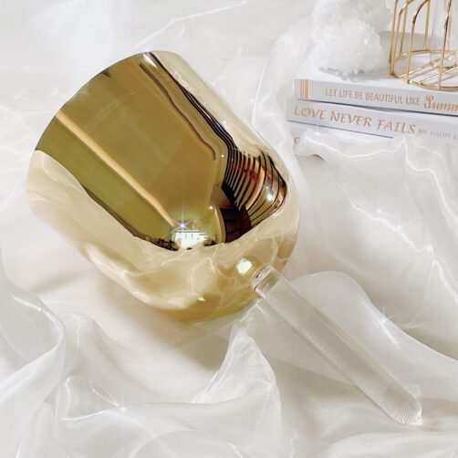 Plated with coats of illuminating 24k Liquid Gold, the ever admired precious sparkling metal gives an extra spiritual lift to the already high vibrational frequency of the pure crystals we have used to create this enchanted soul bowl. Overflowing with the goodness of divinity, this soul bowl stands behind its mark for resilience, prosperity, warmth, healing and spiritual enlightenment. The combination of gold and clear crystals blend makes this truly the one sound bath instrument to own for a lifelong spiritual meditation journey.